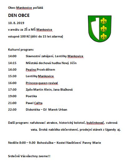 Pozvánka na Den obce Mankovice