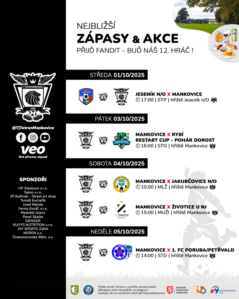 ⚽ NEJBLIŽŠÍ AKCE A ZÁPASY TATRANU 🖤🤍