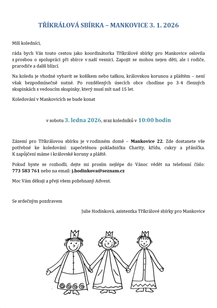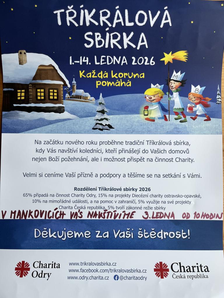 Tříkrálová sbírka v Mankovicích 3.1.2026