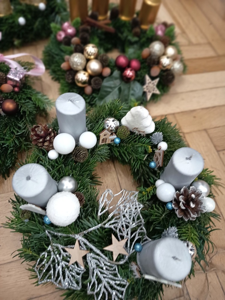 Příjemný večer jsme prožili 25.11.2025 při tvoření adventních věnců a věnců na dveře.