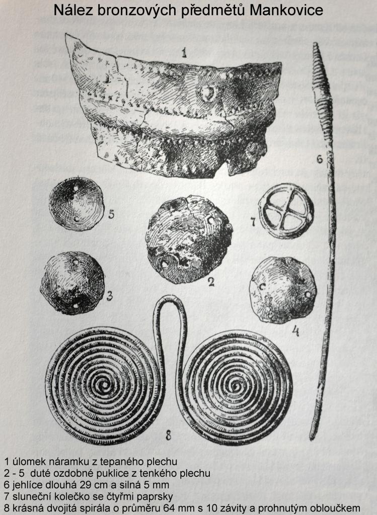 Právě na vlakovém nádražní byly v roce 1891, při stavbě dráhy ze Suchdolu do Oder, těsně před zastávkou v Mankovicích, objeveny bronzové předměty. Odhaduje se, že mohou pocházet z 5. století před Kristem. Předměty ležely pohromadě v hloubce 70 cm bez jakéhokoliv obalu v propustné suti pokryté slabou vrstvou jílu. Nález vypovídá o tom, že se nejednalo o pohřbení zemřelého, protože žádné ostatky nebyly přítomny, vše nasvědčuje tomu, že předměty byly zahrabány úmyslně.